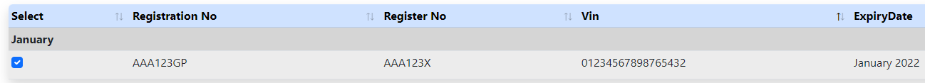 In order to create the transaction for the fleet client, you will have to select the vehicle/s you want to include in the transaction by selecting the checkbox under the Select column. As seen Below