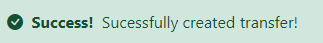 Once successful - your transfer will be created. An email will be sent to your associate, informing them that they have a new transfer to attend to.